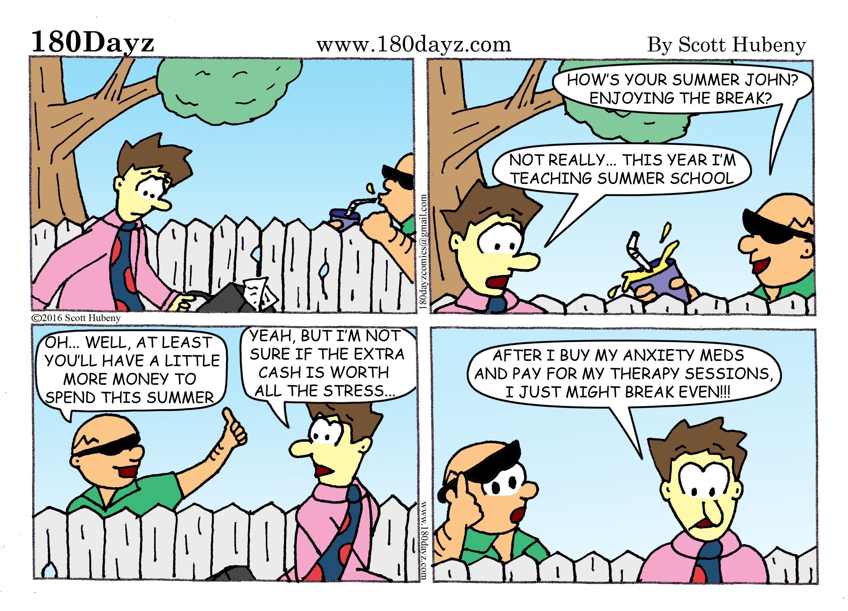 This is my first year doing the summer school thing. I think I could create an entire book filled with cartoons from my brief experience teaching the very select students one gets in their summer school classes, but for now enjoy this little tidbit that I think sums up what many educators feel when teaching over their summer break. Share with all your friends and colleagues that find themselves in this situation! Thanks!