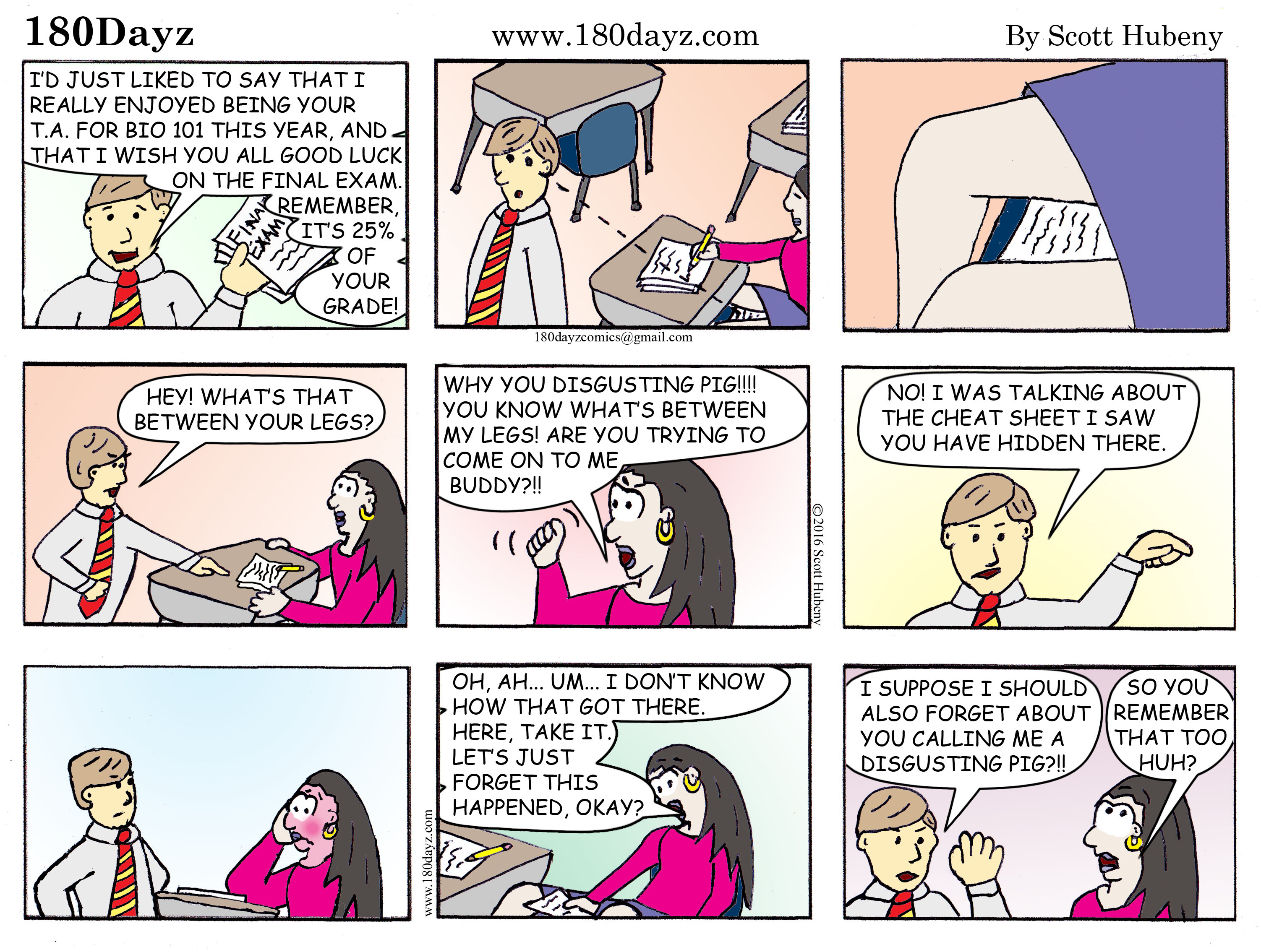 Enjoy Mr. Menken’s story about one student’s scandalous attempt of cheating on a final. Read his story below the comic.