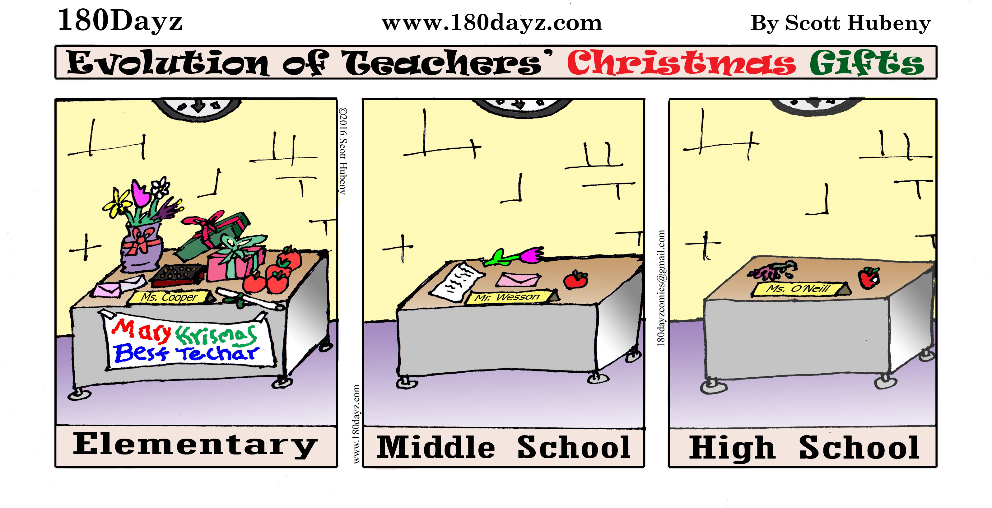 Evolution of Teacher Christmas Gifts ScottDecember 15, 2017Holidays/Events Post navigation PreviousNext My elementary teacher colleagues always get the better of the deal around this time of year… Share this:Tweet Click to email a link to a friend (Opens in new window) Email Share on Tumblr Click to share on Reddit (Opens in new window) Reddit Like Loading... Related