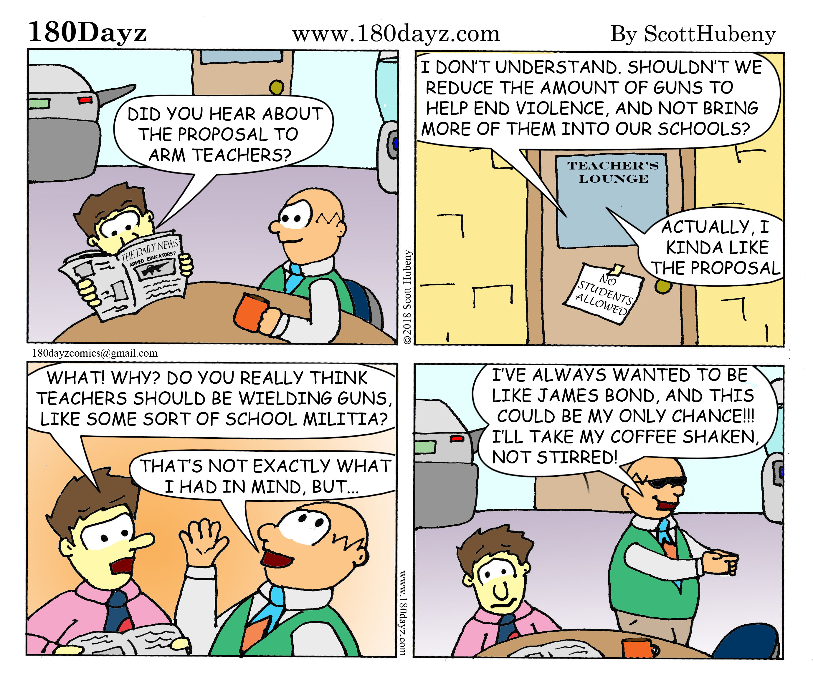 Gun violence is a problem plaguing or society and even our schools now, causing so much hurt and pain. Real solutions to this issue need to be proposed. Some of the ones we hear coming from our political leaders are comical enough that they need to be featured in a comic strip…