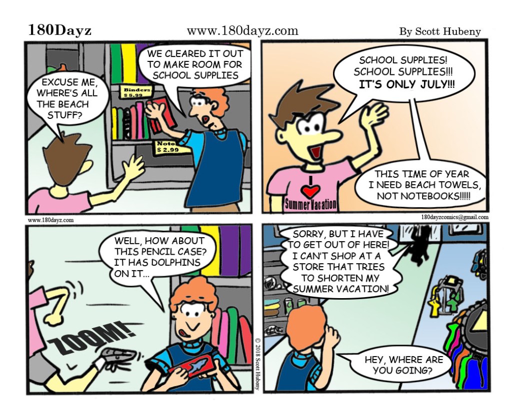 Seems like stores have already cleared out their shelves of summer wares to make room for school supplies. Now stepping into a store brings a reminder that our summer vacation is fading fast. I use to think it was bad when they would put out the Christmas decorations before Thanksgiving, but this is worse, it’s borderline torturous to teachers!