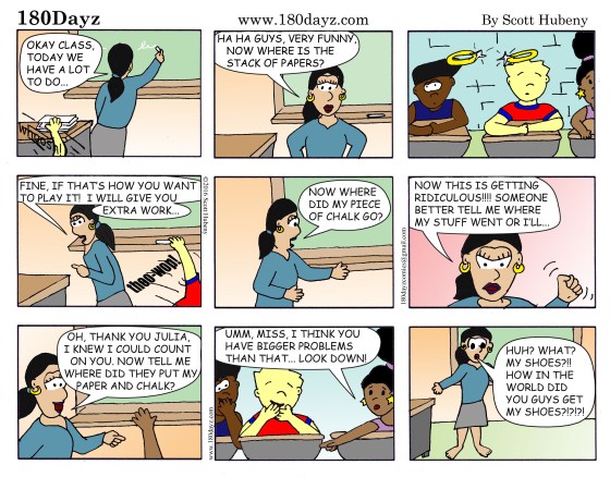 Enjoy this comic based off another teacher story sent to me at 180dayzcomics@gmail.com. A special thanks to Mrs. Lorenz for sharing … More